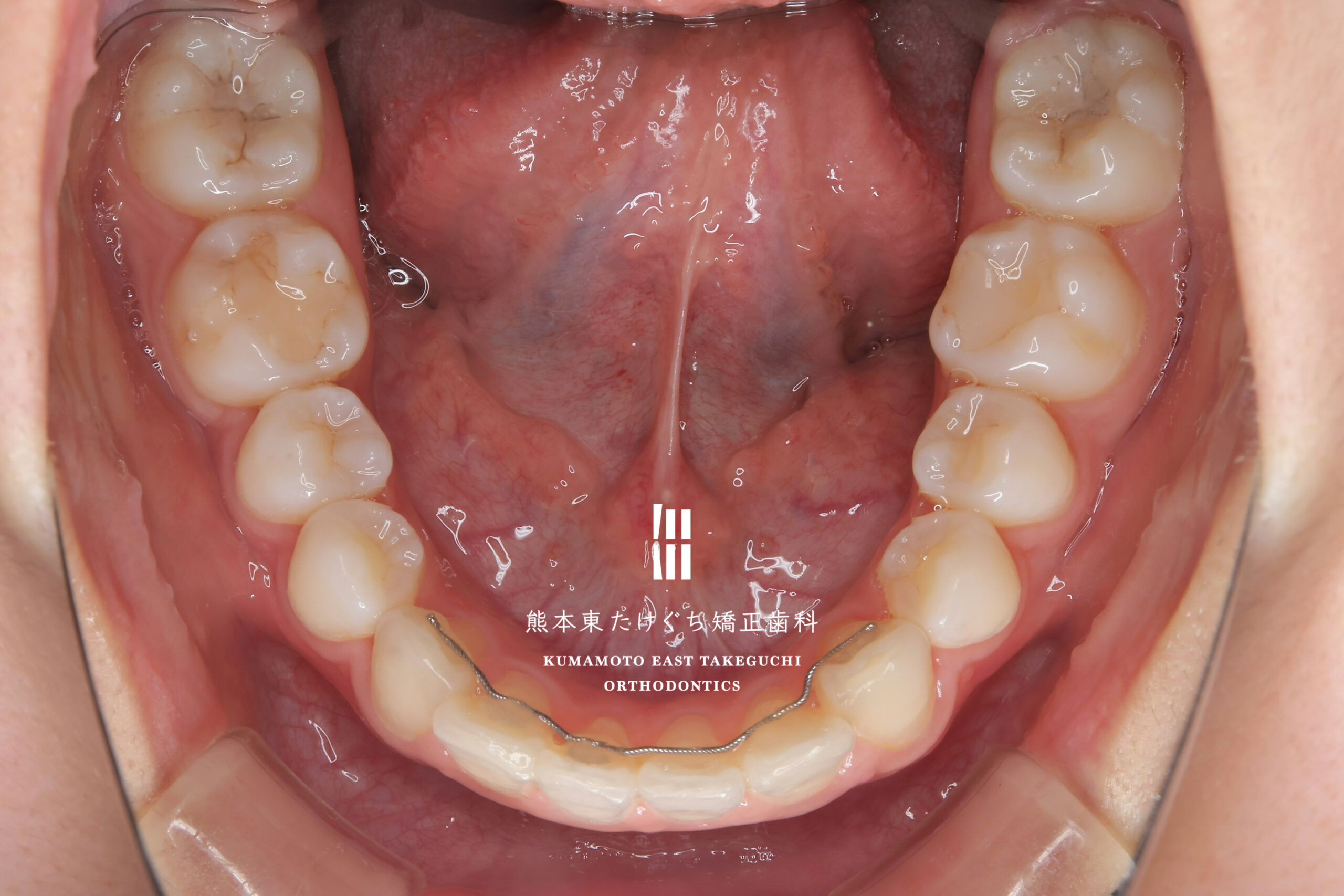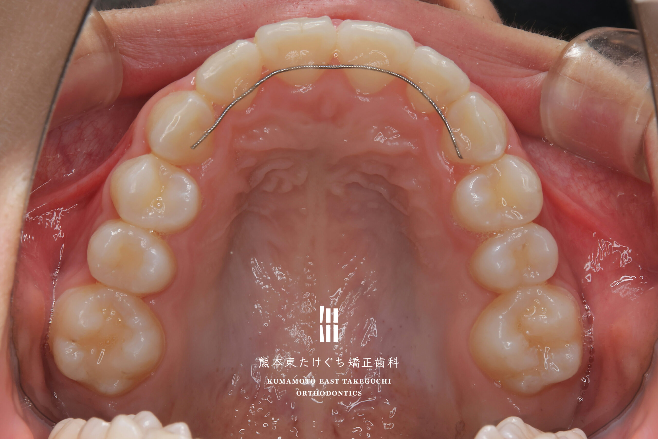 治療内容 | 叢生および過蓋咬合を改善するため、非抜歯で固定式ワイヤーを用いて治療しました。 |