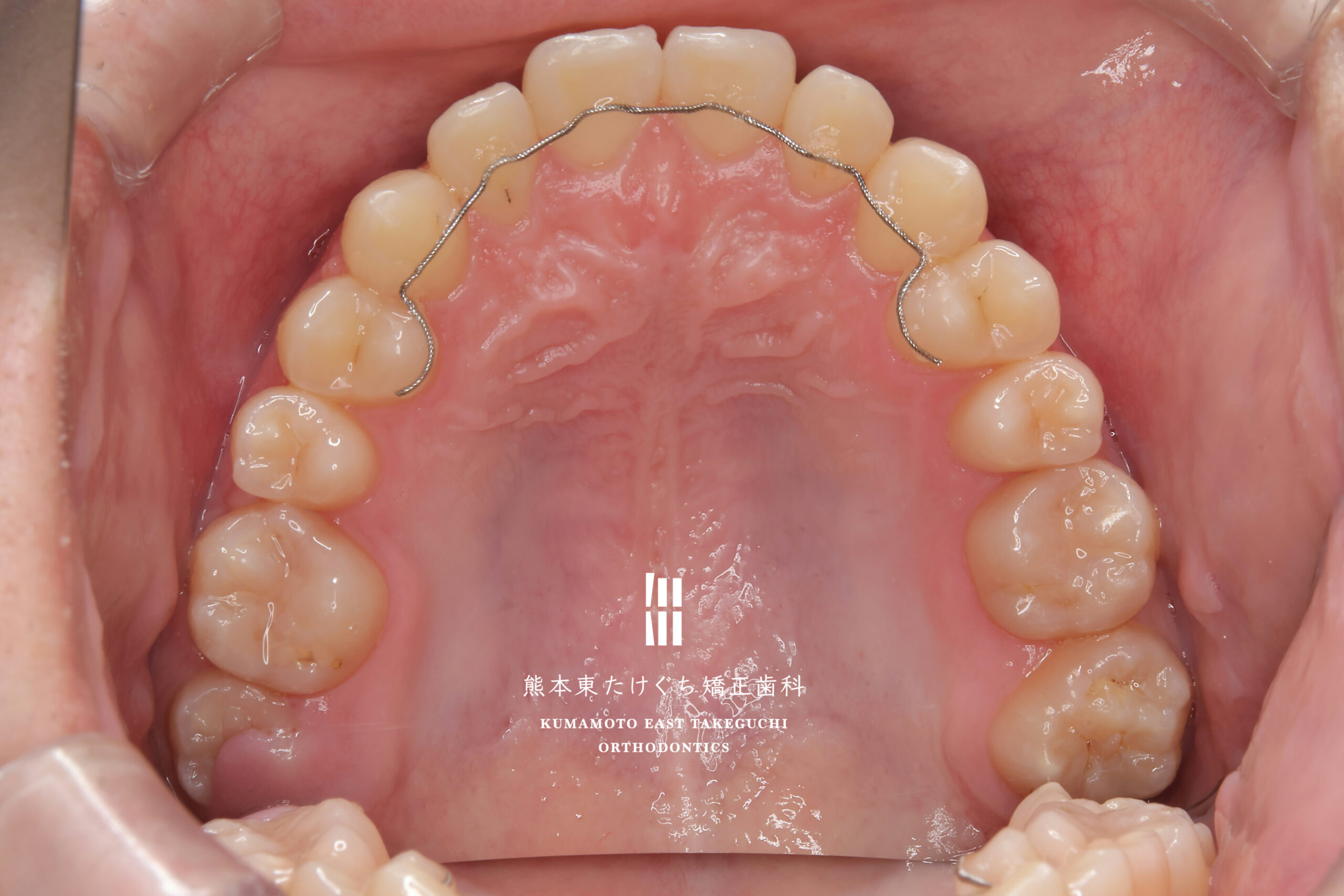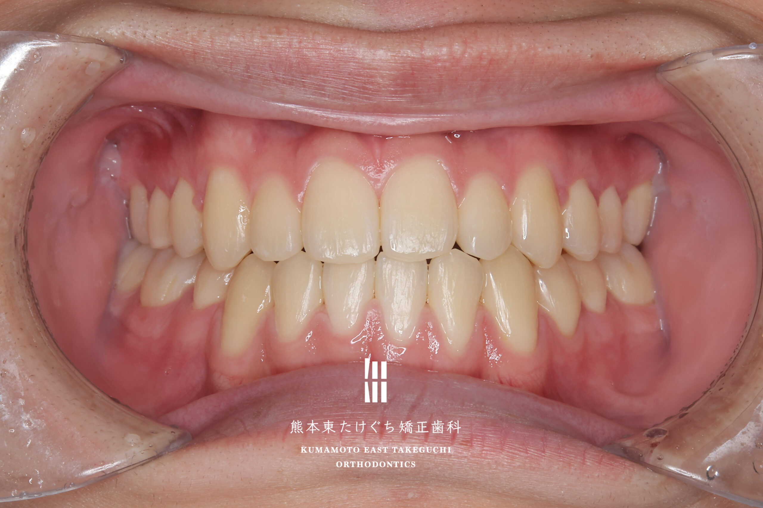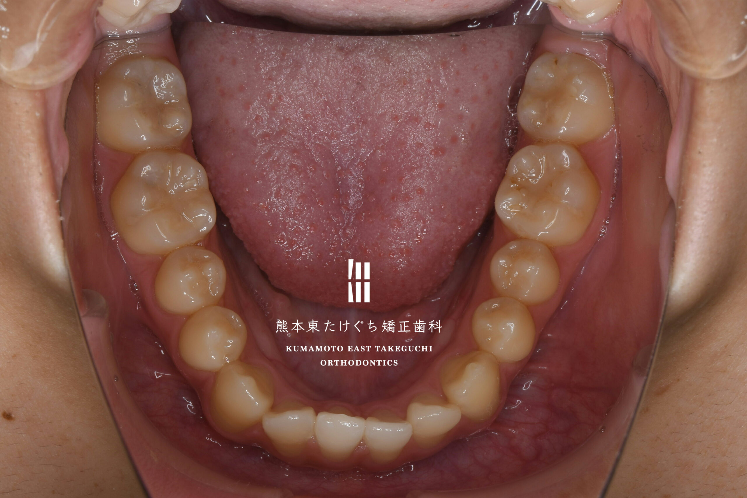 | 治療内容 | 下顎骨の左方偏位および過蓋咬合を伴う下顎前突を改善するため、下の永久歯を1本抜歯し、固定式ワイヤー装置を用いて治療しました。 |