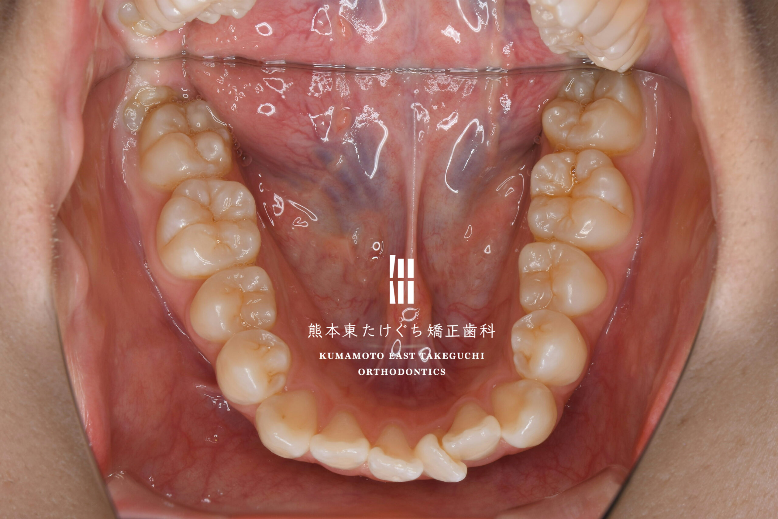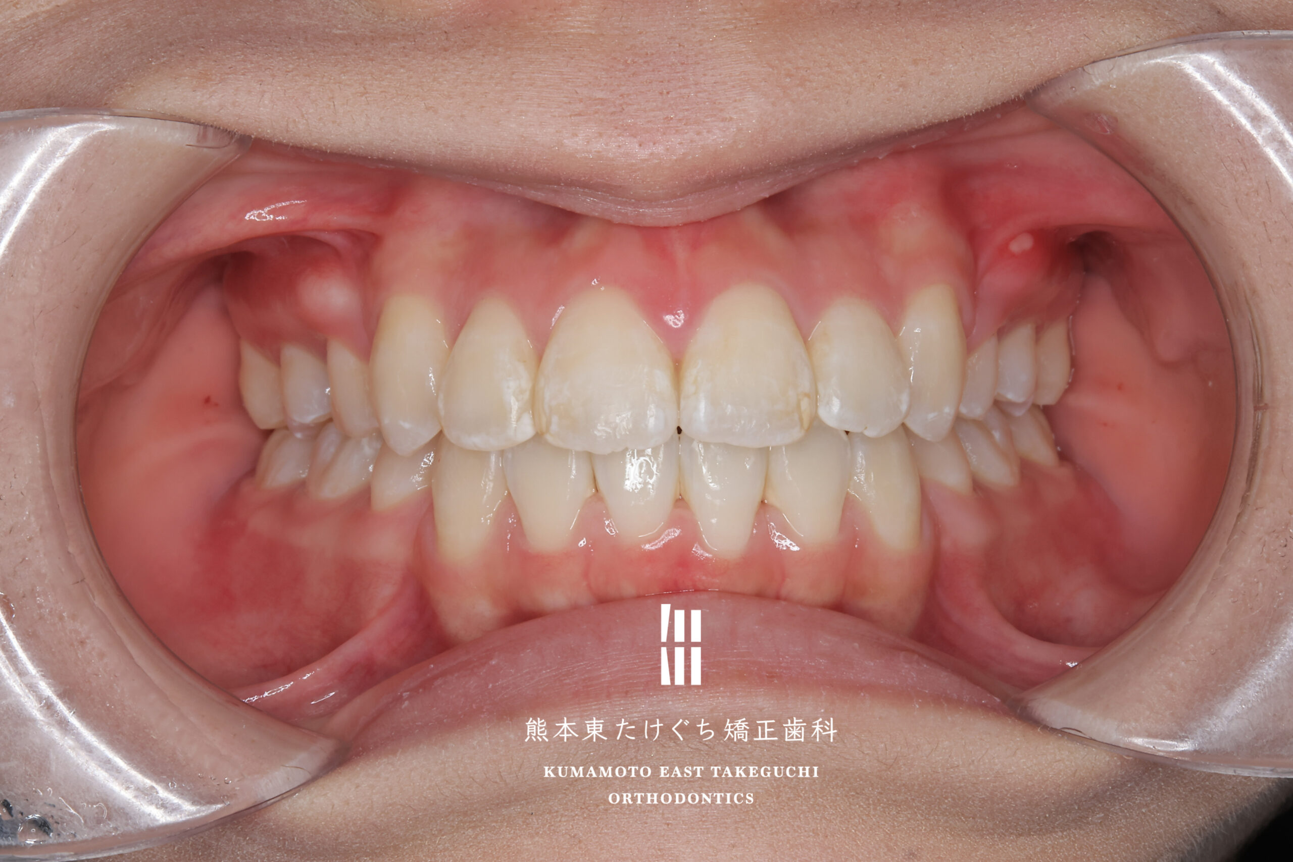 | 治療内容 | 叢生および正中線の偏位を改善するため、上下の永久歯を4本抜歯し、アンカースクリューと固定式ワイヤーを用いて治療しました。 |