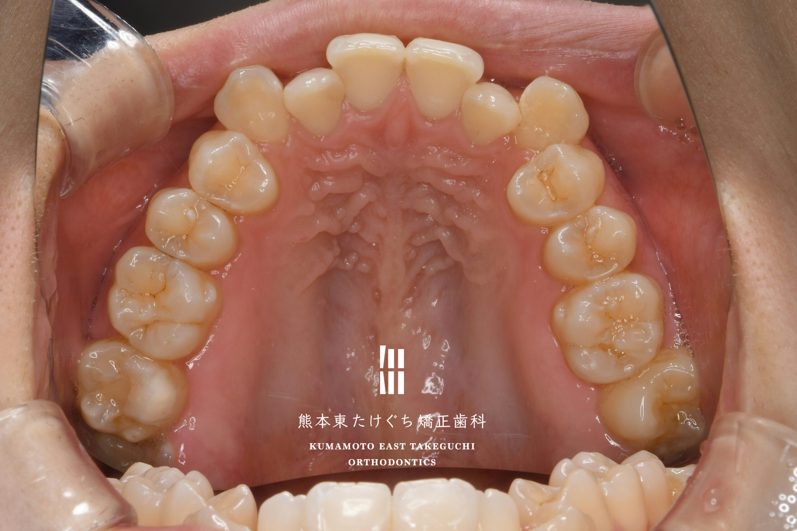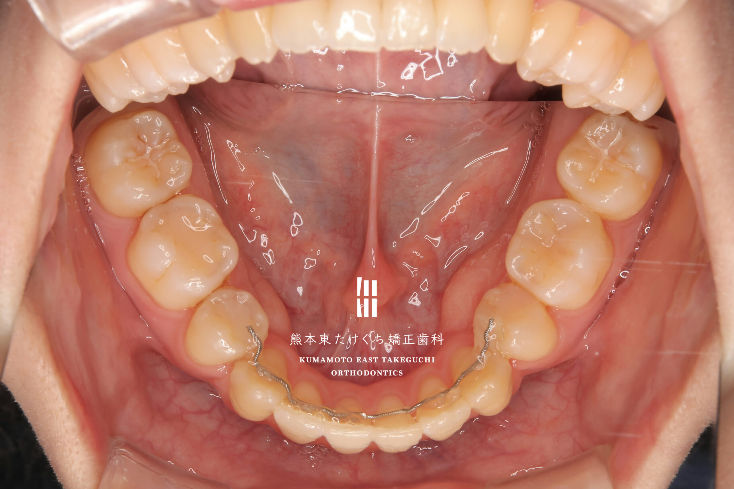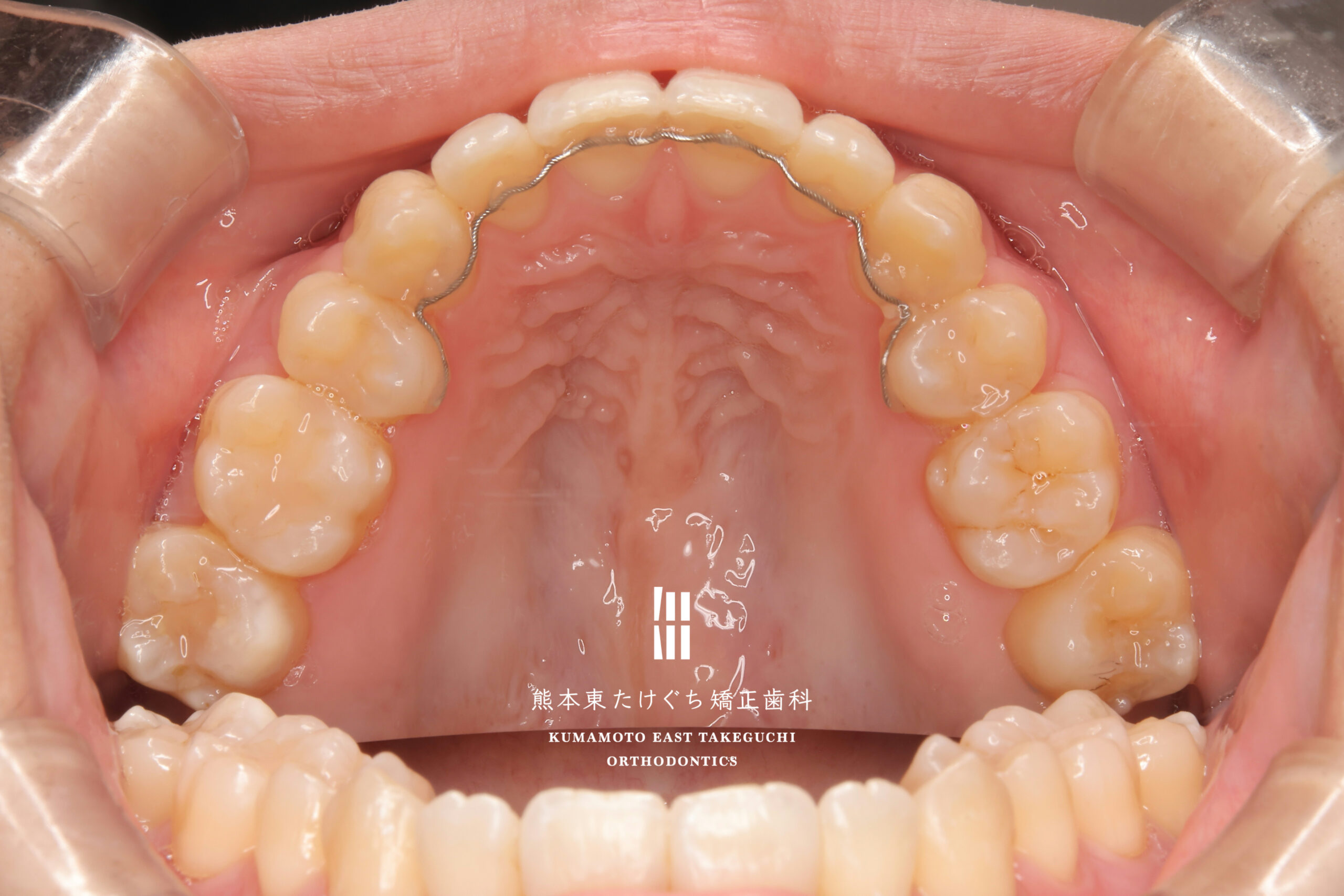 | 治療内容 | 叢生を伴う開咬を改善するため、上の永久歯を2本と下の永久歯2本を抜歯し、固定式ワイヤー装置を用いて治療しました。 |