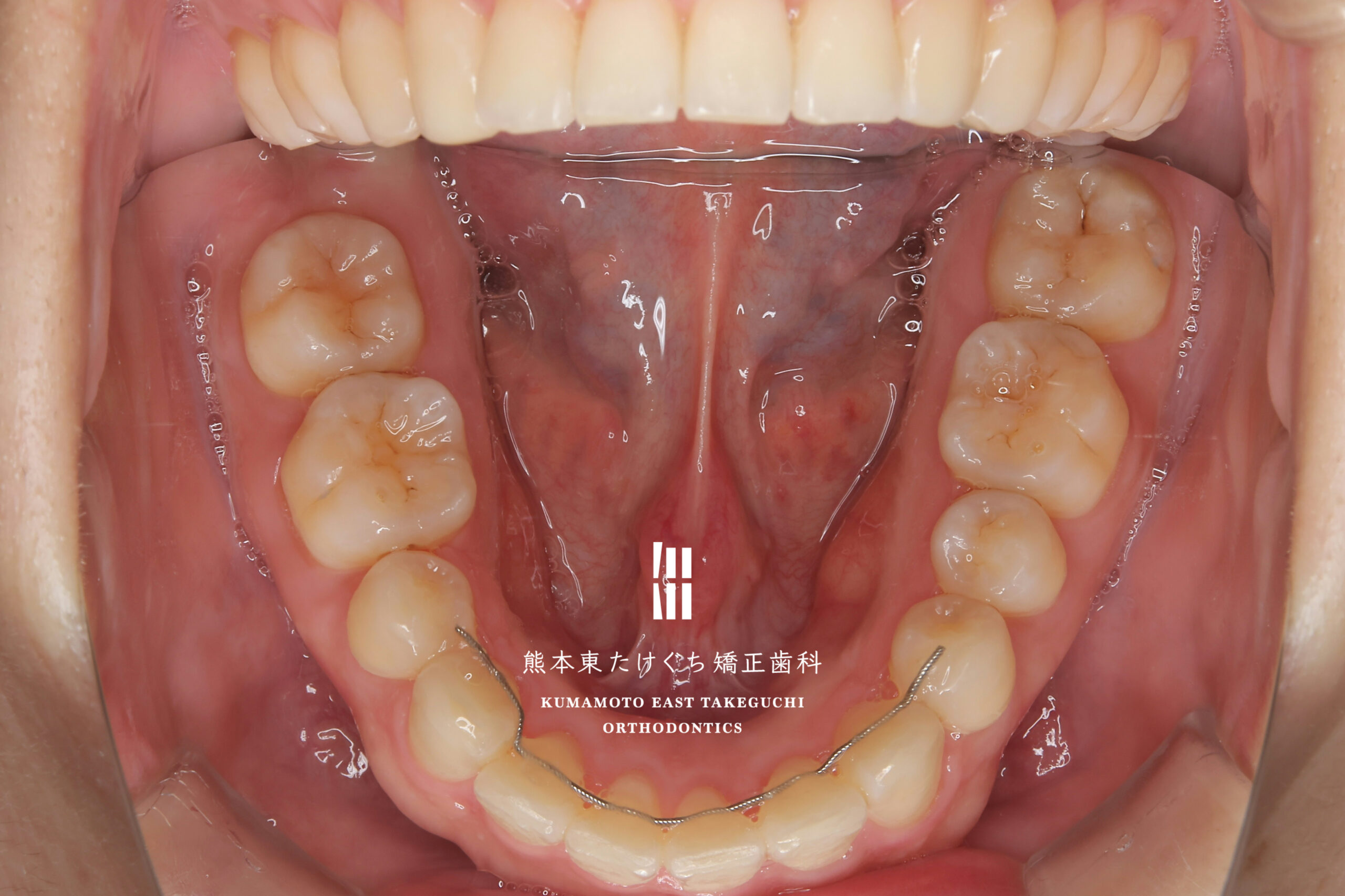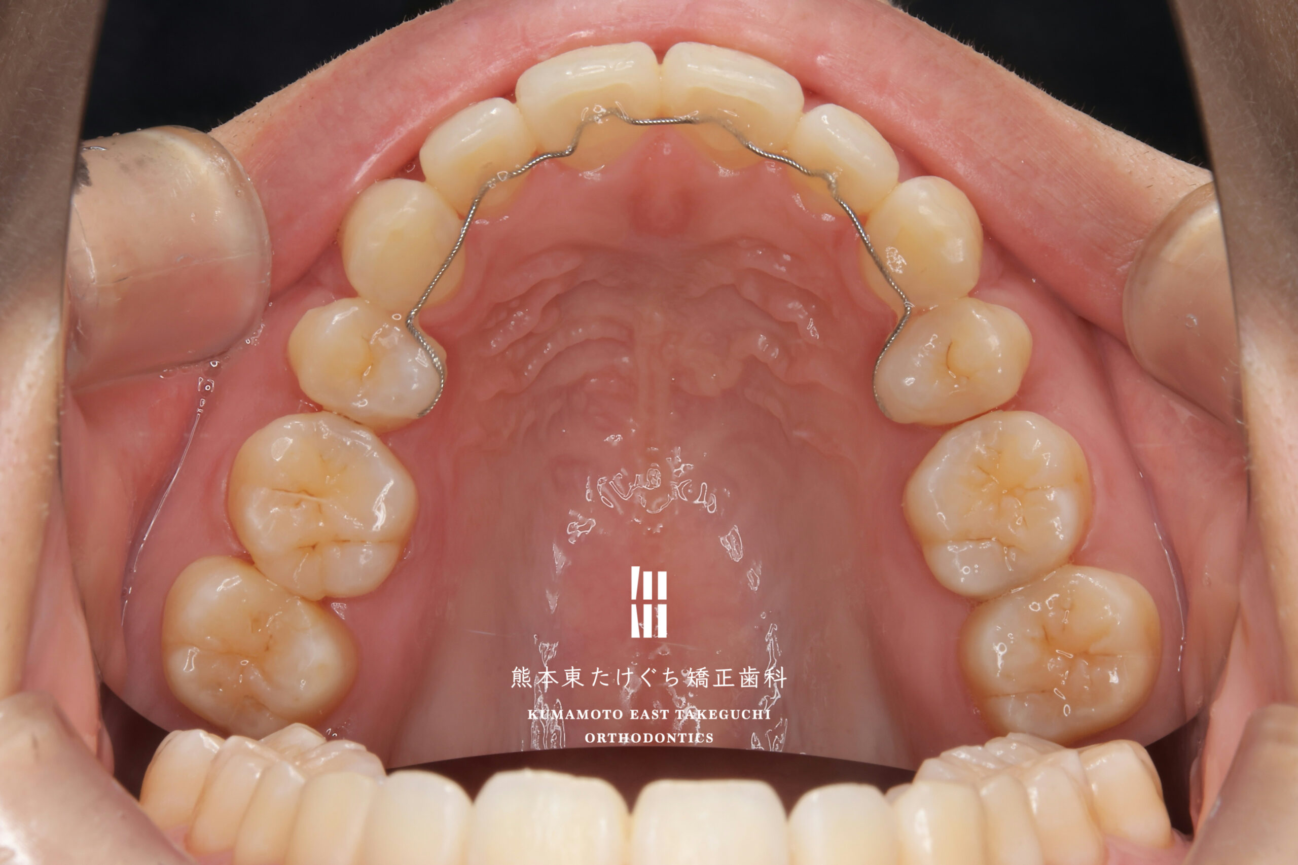 治療内容 | 上顎前突を改善するため、上の永久歯2本と下の永久歯を1本抜歯し、固定式ワイヤー装置を用いて治療しました。 |