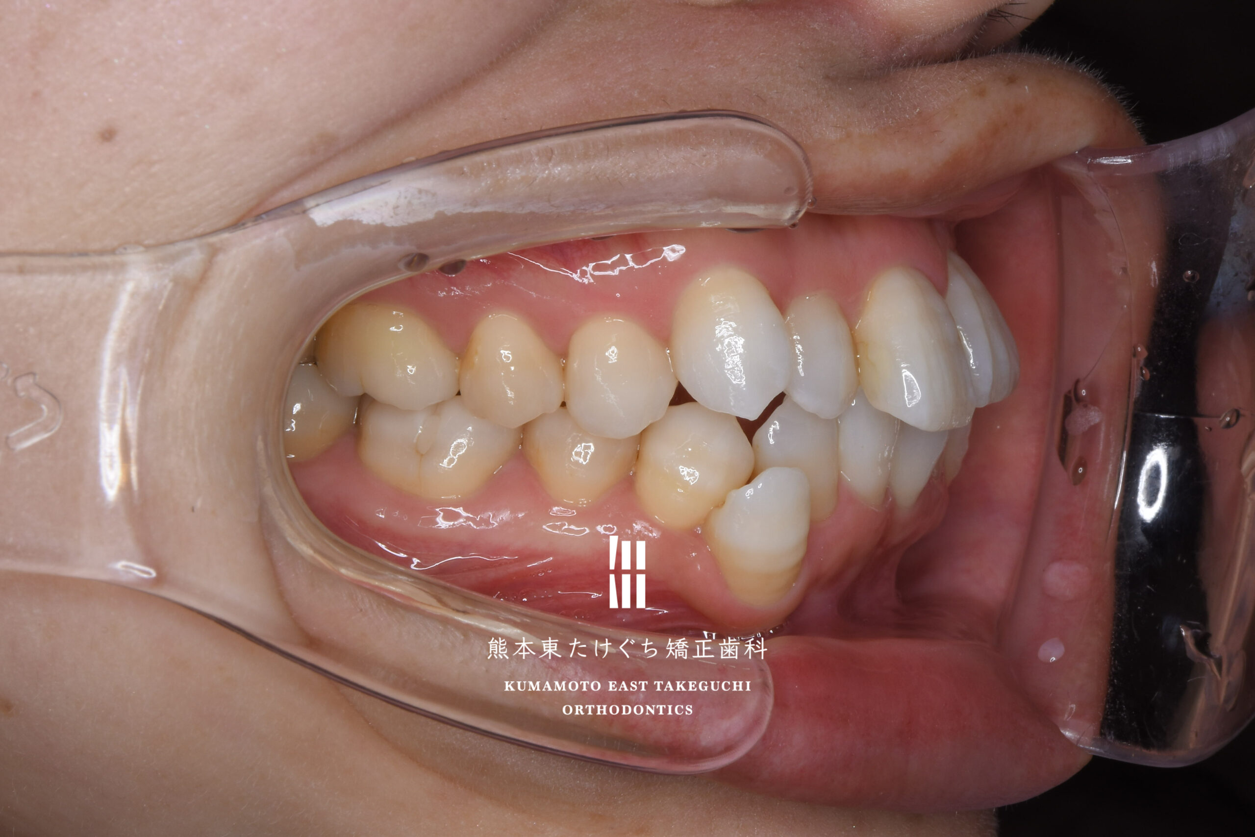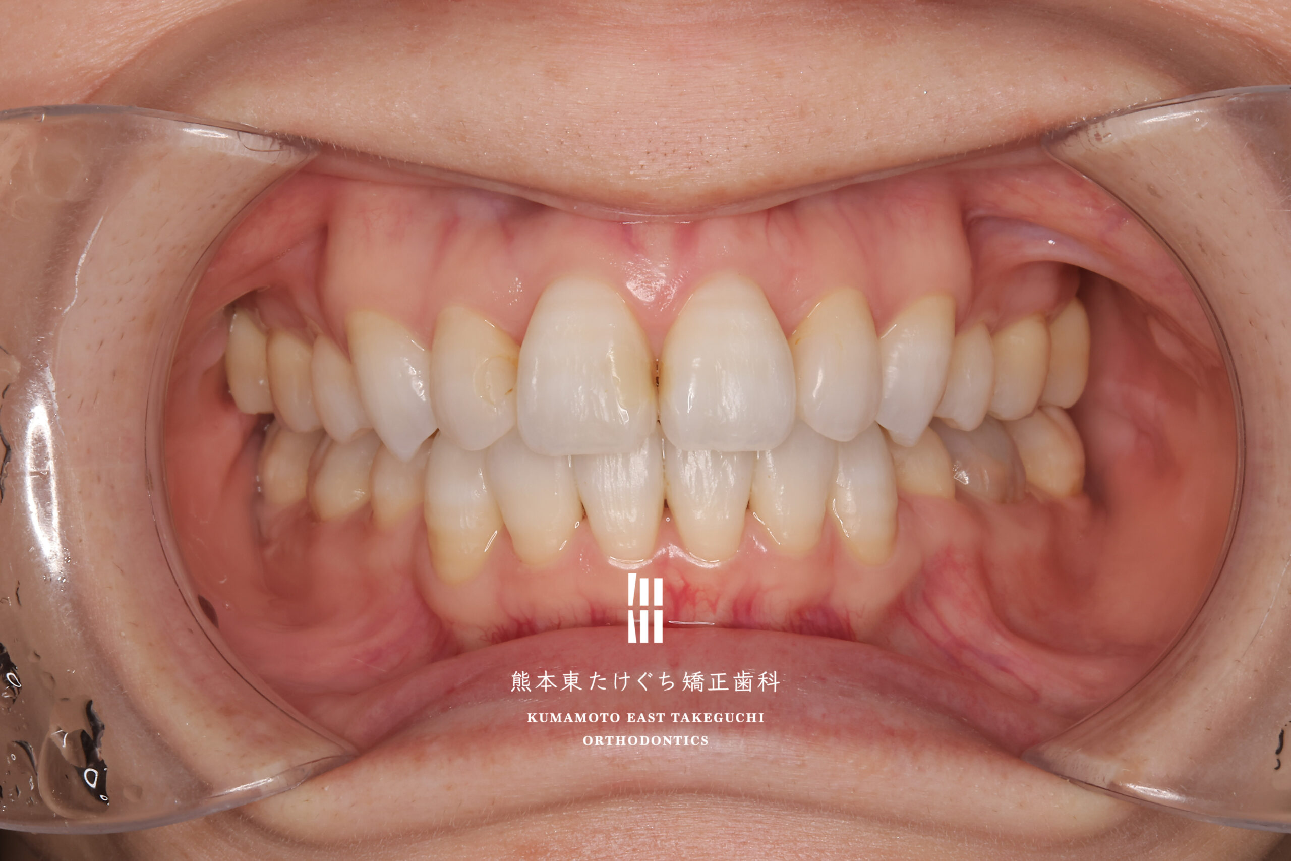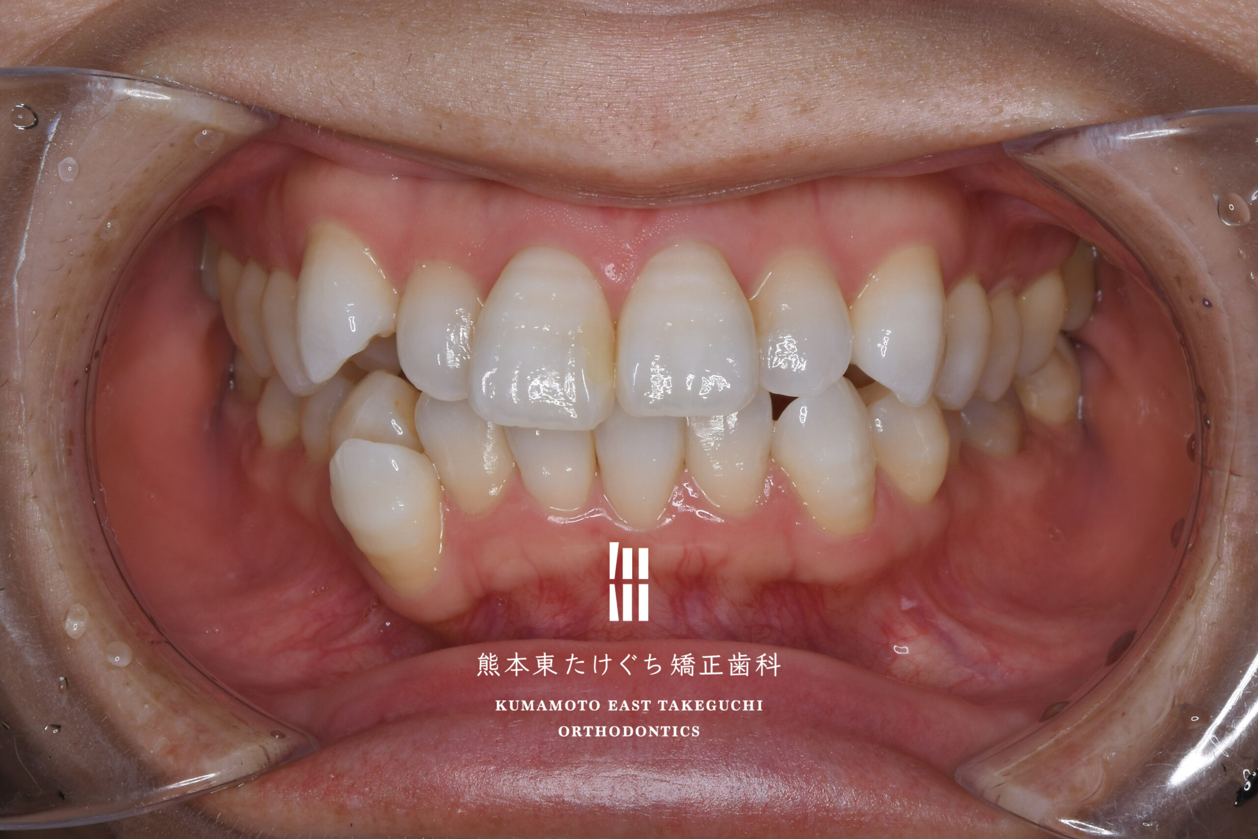 | 治療内容 | 正中線の偏位および叢生を伴う上顎前突を改善するため、上下左右の永久歯を合計4本抜歯し、固定式ワイヤー装置を用いて治療した。 |