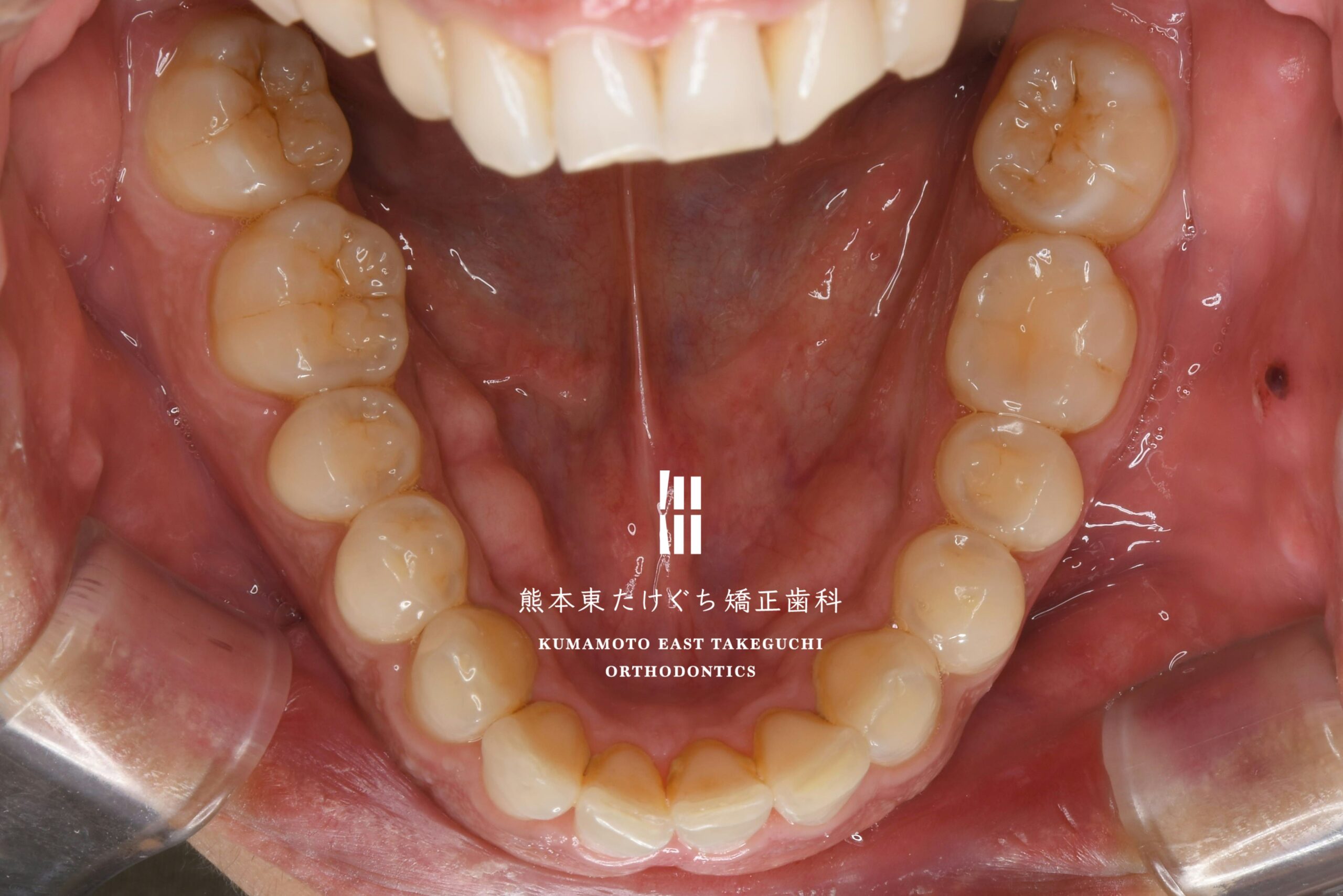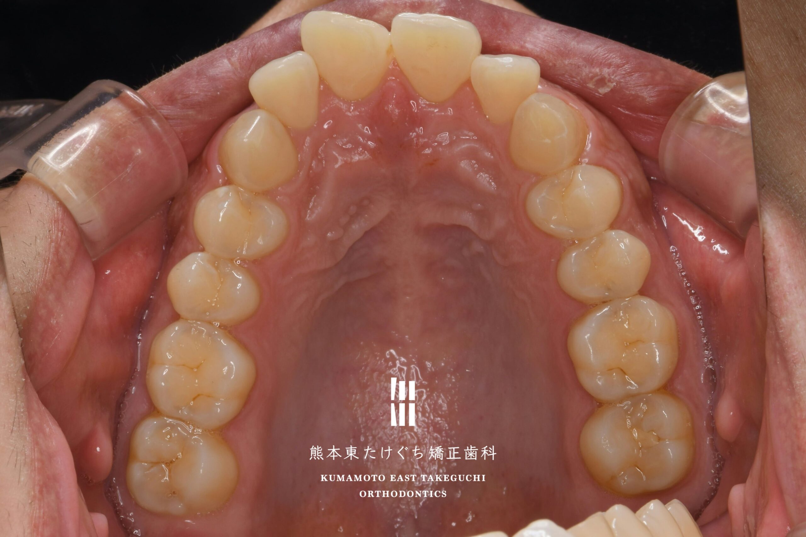 | 治療内容 | 上下顎狭窄歯列弓および過蓋咬合、 上顎前突を改善するため、上の永久歯を2本抜歯し、アンカースクリューと固定式ワイヤーを用いて治療しました。 |
