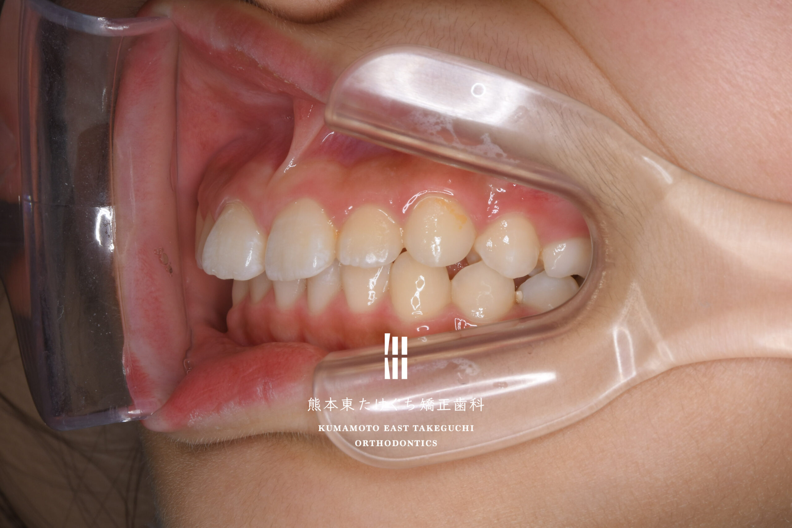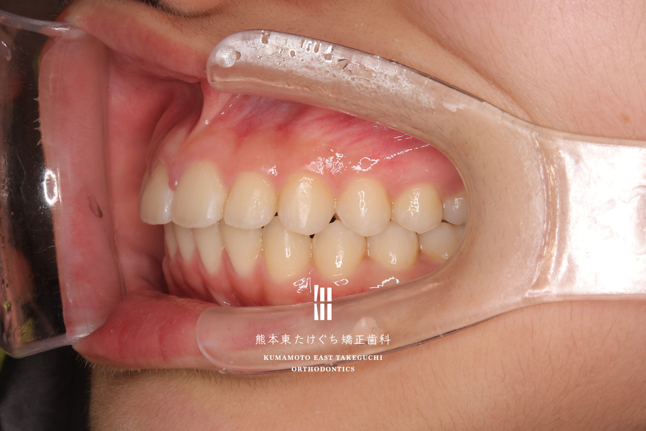 | 治療内容 | 正中離開および過蓋咬合を伴う上顎前突を改善するため、取り外し式の矯正装置 BJA(バイト・ジャンピング・アプライアンス)と、部分的固定式ワイヤー装置を用いて治療しました。 |