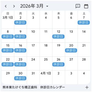 熊本東たけぐち矯正歯科の2月の休診日についてお知らせします。